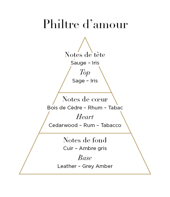 Godet Philtre d’amour enivre de son rhum épicé sur un cuir chaleureux, dans un sillage de tabac relevé d’iris poudré.