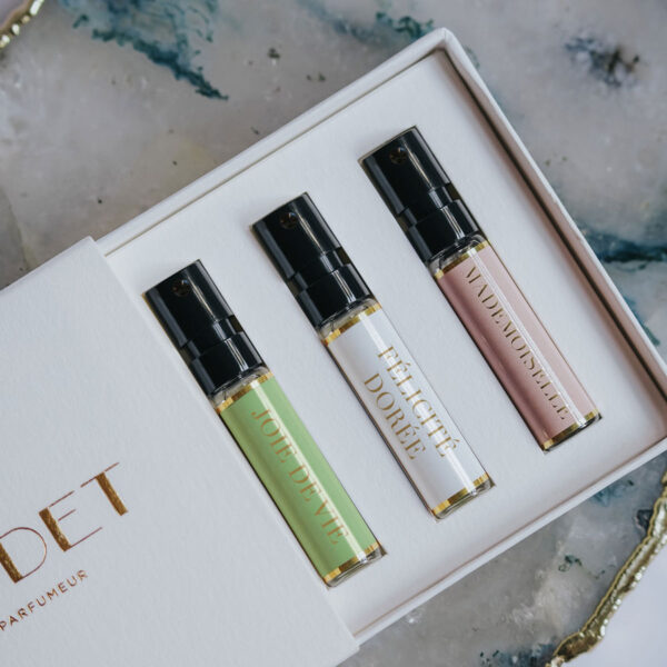 Ravie de ma commande personnalisée pour ce coffret découverte. « Félicité Dorée » est un ravissement pour les sens!